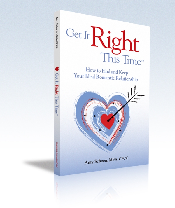 You’re single again! And it’s not what you expected at this point in your life. So what are your options now? Give up? Focus on your career? Concentrate on your tennis game? Why not, as the song says, pick yourself up, dust yourself off, and start all over again? Perhaps you will Get It Right This TimeTM! Dating-Relationship Life Coach Amy Schoen has helped countless singles find, create and nurture successful relationships. Get It Right This TimeTM places at your fingertips the wisdom she has gathered from years of experience as a relationship coach and from her own personal journey.